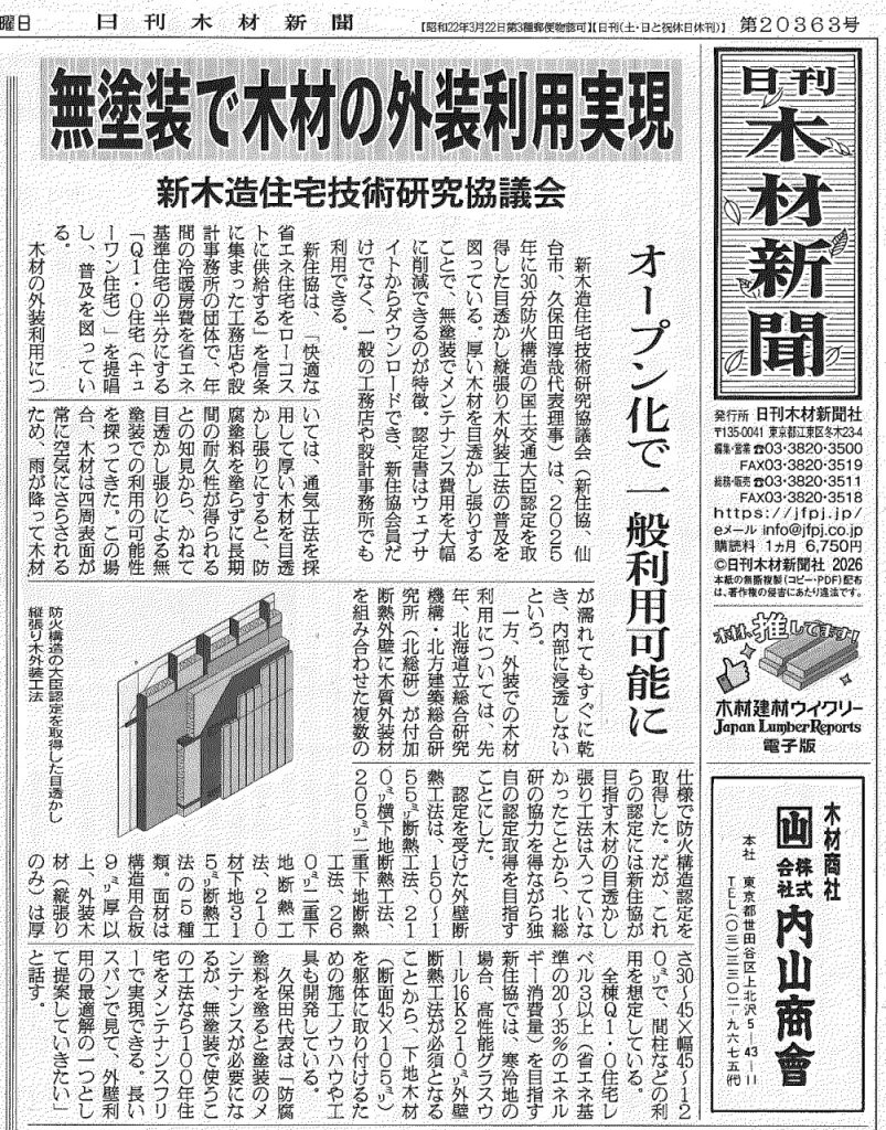 日刊木材新聞さんが来仙し、新住協の活動について記事が掲載されています。地道な日頃の取り組みや積み重ねをこうして紹介いただけていることを、うれしく思います。これからも、会員の皆さまとともに、高断熱住宅の普及に地道に取り組んでいきます。